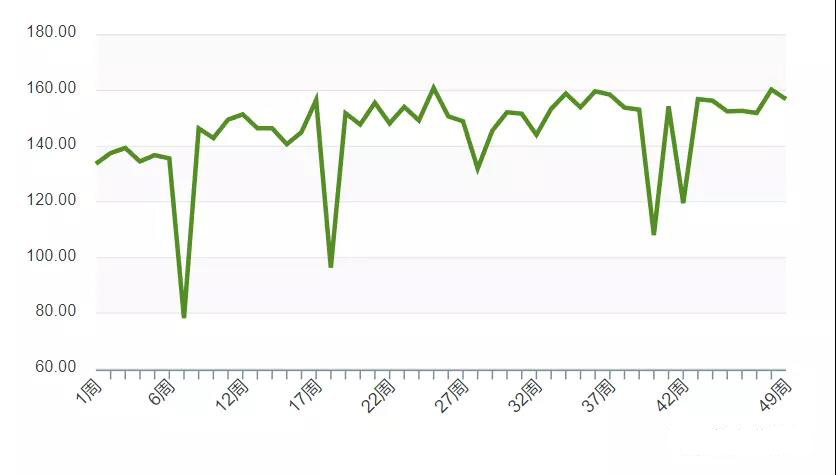 最近一周毛兔產(chǎn)業(yè)表現(xiàn)為156.98,與上周相比下降2.11%