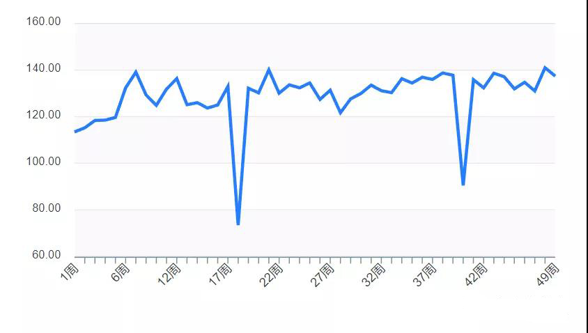 最近一周兔產(chǎn)業(yè)表現(xiàn)為137.74,與上周相比下降2.51%