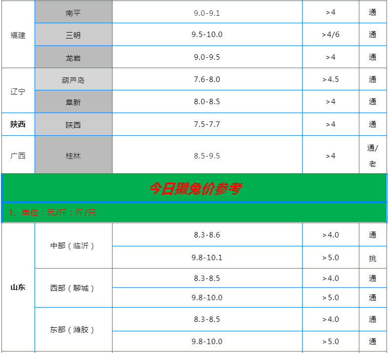 全國各地兔價(jià)行情信息快報(bào)?。?022.5.23)