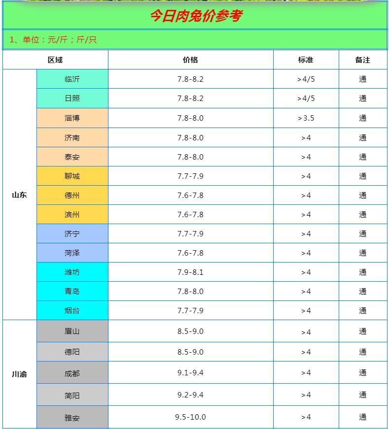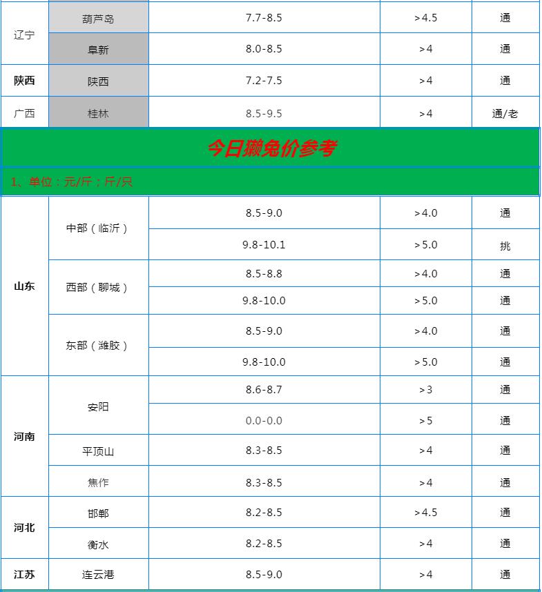全國(guó)各地兔價(jià)行情信息快報(bào)?。?022.6.13)