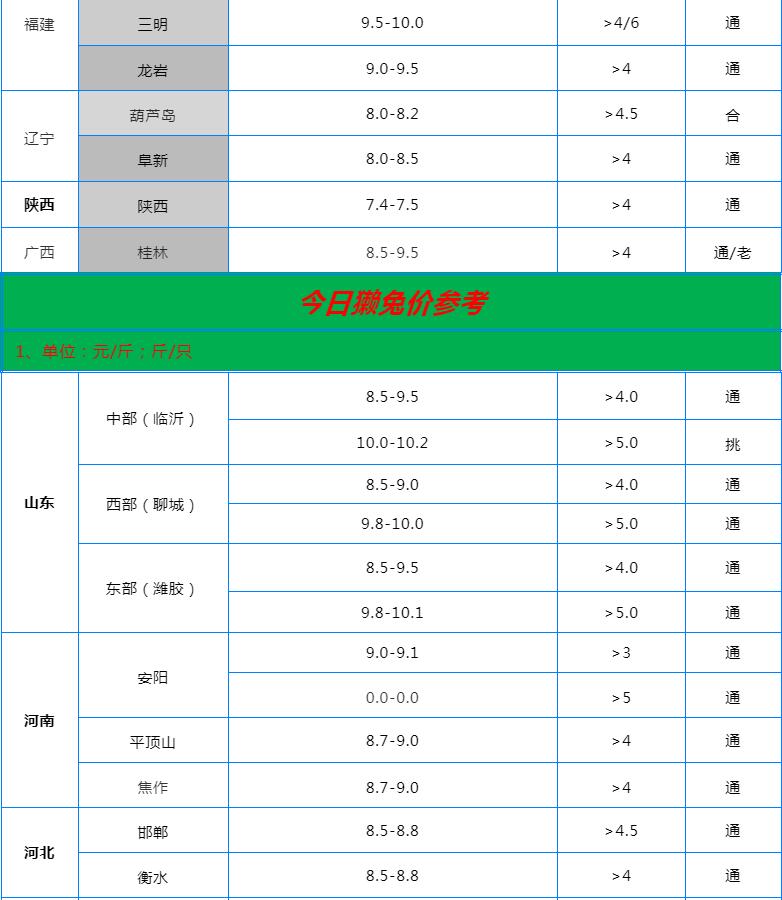 全國(guó)各地兔價(jià)行情信息快報(bào)?。?022.6.20)