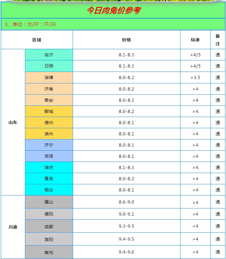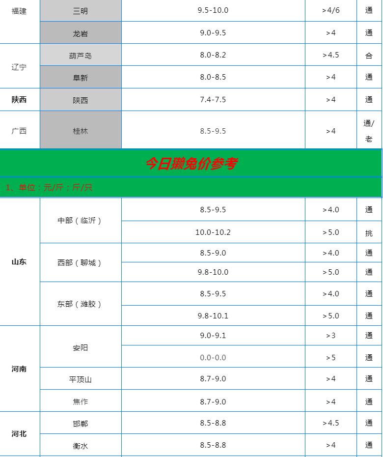 全國(guó)各地兔價(jià)行情信息快報(bào)?。?022.6.21)