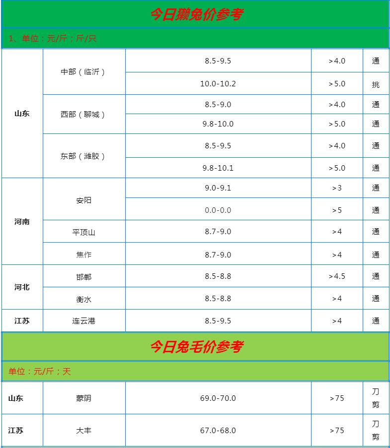 全國各地兔價行情信息快報?。?022.6.25)