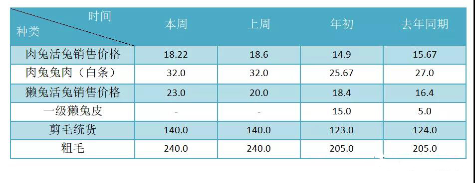 最新 兔業(yè)信息發(fā)布 最近一周肉兔活兔價格為18.22(元/公斤),與上周相比下降2%,與年初相比上升18% 最近一周肉兔活兔最高省份是福建,價格為20(元/公斤),最低省份是