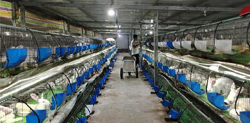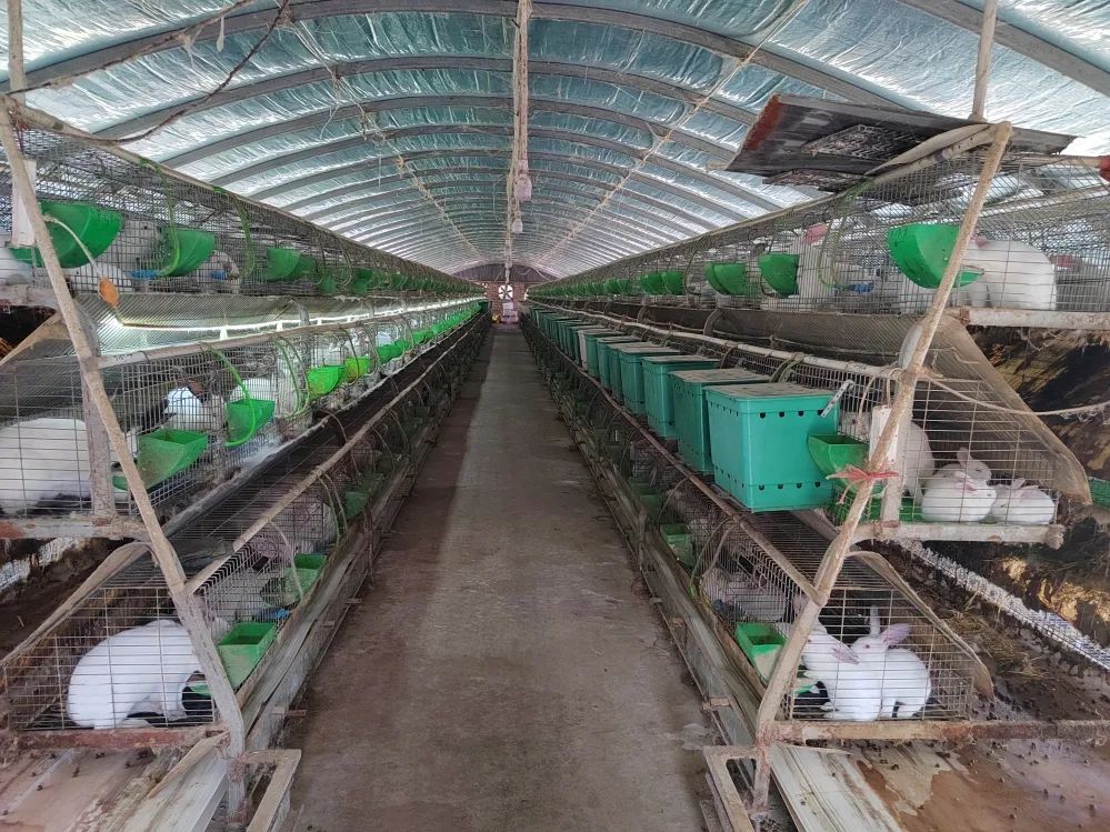 日前,走進(jìn)河南省洛陽市嵩縣舊縣鎮(zhèn)肉兔養(yǎng)殖基地,看到一排排兔籠干凈整潔,一只只兔子干凈雪白、膘肥體壯,工人們有的在檢查幼兔生長情況,有的在打掃舍圈、投喂飼料,正忙得不亦樂