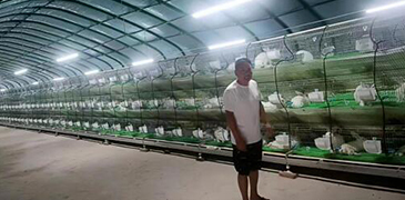 現(xiàn)在,走進(jìn)山東省臨沂市莒南縣澇坡鎮(zhèn)東高柱村臥石嶺伊拉肉兔養(yǎng)殖專業(yè)合作社,映入眼簾的是一千一百平方米的規(guī)模養(yǎng)殖大棚,一排排兔籠整齊劃一、干凈整潔,一只只雪白體壯的兔子
