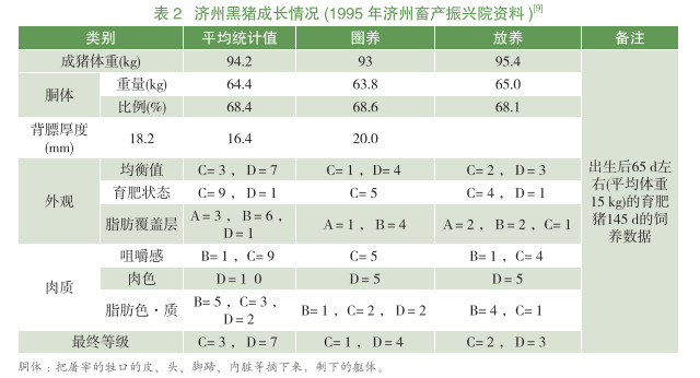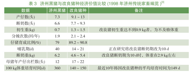 雖然本土黑豬的脂肪含量高,但是由于個體體型體重較小,與近年來的改良豬種之間的差異較大,特別是濟州黑豬成長周期長,產(chǎn)肉量較少,經(jīng)濟價值相對較低。濟州純種黑豬培育基地調(diào)查分析了仔豬從出生到20周齡(140 d)的體重變化,數(shù)據(jù)顯示仔豬初生重和斷奶重(4周齡)分別為1.1 kg和6.0 kg左右,與一般改良豬相比體重較低;據(jù)調(diào)查結(jié)果顯示,此后10周齡和20周齡體重分別為22.1 kg和60.2kg,增長緩慢,與改良豬種相比,生長速度僅為改良豬的60%左右。