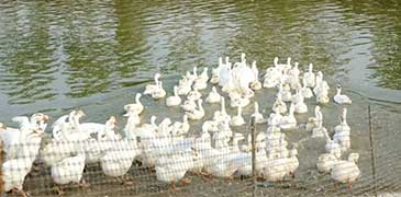 近日,天剛蒙蒙亮,河南省駐馬店市新蔡縣今是街道余莊村的田地里已然熱鬧非凡?! ≡谌f潤(rùn)家庭農(nóng)場(chǎng)的散養(yǎng)基地,上萬只白鵝引頸高歌,健碩的獅頭鵝氣宇軒昂,皖浦大白鵝踱著方步,它